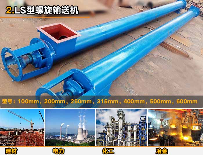 型號:LS型螺旋輸送機(jī)以管徑為型號:100mm,200mm,250mm,315mm,400mm,500mm,600mm等型號。
