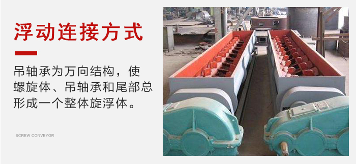 各傳動(dòng)部位均采用浮動(dòng)連接方式,吊軸承為萬(wàn)向結(jié)構(gòu),使螺旋體、吊軸承和尾部總形成一個(gè)整體旋浮體,在一定范圍內(nèi)可以輸送阻力自由旋轉(zhuǎn)避讓,不卡料,不堵料。
