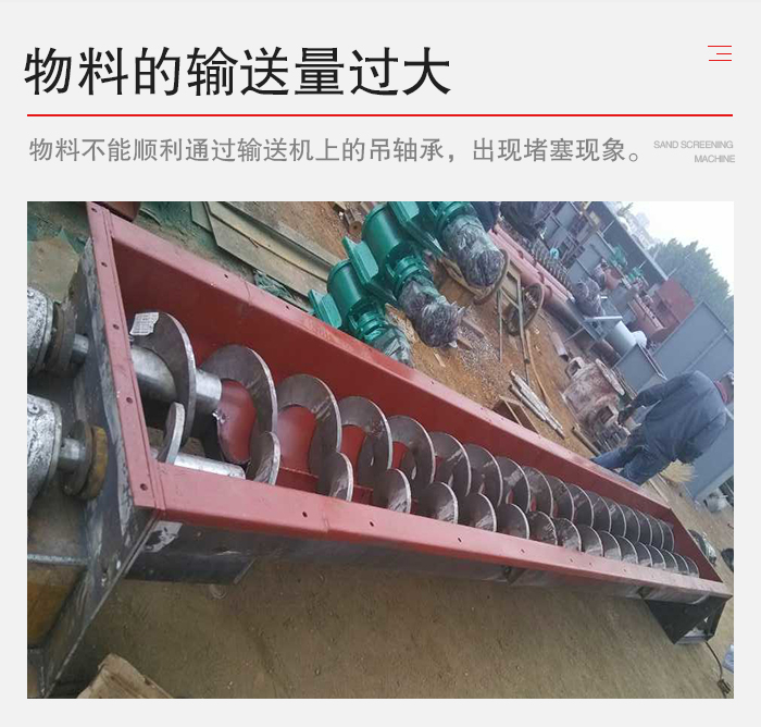 1、物料水分大,集結在螺旋吊軸承上并逐漸加厚,使來料不易通過,處理方法是加強原料烘干。
