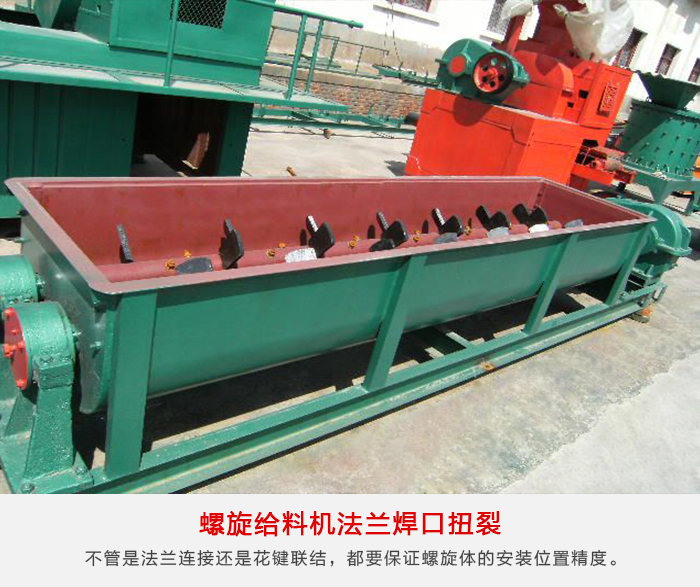 1、由于異常扭矩的產生,聯結法蘭焊接失效,處理方法是保證設備安裝精度,不管是法蘭連接還是花鍵聯結,都要保證螺旋體的安裝位置精度,安裝后應接線調試確定螺旋轉向,聲音有無異常。試運轉后檢查電機、減速機、軸承溫升,一切正常后,開動手動螺旋料倉閘門逐漸加料,經過調試后,使螺旋運轉平穩。