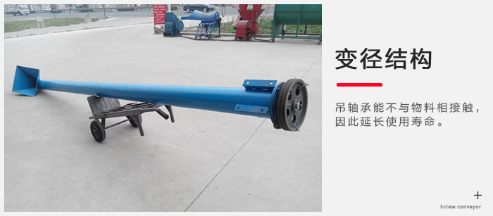 該輸送機是采用變徑結(jié)構(gòu),吊軸承能不與物料相接觸,因此它的壽命長。
