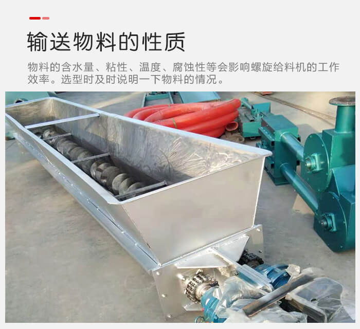 物料的含水量、粘性、溫度、腐蝕性等會影響螺旋給料機(jī)的工作效率,舉例來說,如含水量大,粘性強(qiáng)的物料在輸送過程中比較容易粘連在螺旋葉片上,會出現(xiàn)結(jié)塊現(xiàn)象,這樣會大大削減螺旋給料機(jī)的輸送效率和使用壽命,在選型的時(shí)候,用戶需要事先向廠家說明一下物料的情況,以便廠家為您推薦合適的型號。