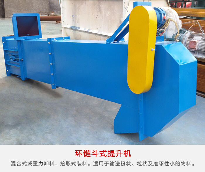 環(huán)鏈斗式提升機(jī)采用混合式或重力卸料,挖取式裝料。牽引件用優(yōu)質(zhì)合金鋼高度圓環(huán)鏈,適用于輸送粉狀、粒狀及小塊狀的無磨琢及磨琢性小的物料,如煤、水泥、碎石、砂子、化肥、糧食等。