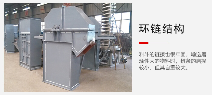 總結(jié):1、環(huán)鏈的結(jié)構(gòu)和制造比較簡單,與料斗的鏈接也很牢固,輸送磨琢性大的物料時,鏈條的磨損較小,但其自重較大。