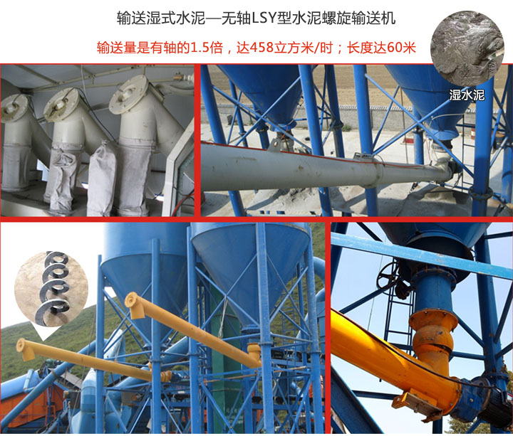 潮濕的水泥含水量偏大,且易粘黏,選擇無軸式水泥螺旋輸送機(jī),采用無螺旋軸,只含螺旋葉片的設(shè)計理念,可避免輸送中物料堵塞,卡料等現(xiàn)像;而且無軸設(shè)計其輸送量是有軸的1.5倍,高達(dá)458立方米/時;長度達(dá)60米,可多級串聯(lián),遠(yuǎn)距離輸送物料。