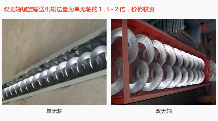 無(wú)軸螺旋輸送機(jī)型號(hào)有WLS150-WLS500等6中規(guī)格,型號(hào)越大產(chǎn)量越高,價(jià)格越貴;此外還分單無(wú)軸和雙無(wú)軸兩種:雙無(wú)軸螺旋輸送機(jī)輸送量為單無(wú)軸的1.5-2倍,可輸送物料同時(shí)具備冷卻、攪拌的功能,其價(jià)格比單軸貴。