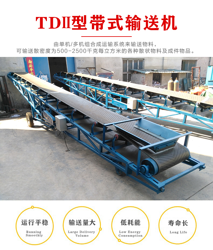 TDII型帶式輸送機(jī)式通過型系列產(chǎn)品,是將原來TD75型機(jī)、DX型兩大系列(即通用型和高強(qiáng)度型)統(tǒng)一,更新?lián)Q代的新產(chǎn)品,可廣泛用于冶金、礦山、煤炭、港口、電站、建材、化工、輕工、石油等各個(gè)行業(yè)。由單機(jī)多機(jī)組合成運(yùn)輸系統(tǒng)來輸送物料,可輸送散密度為500-2500KG/M3的各種散狀物料及成件物品。