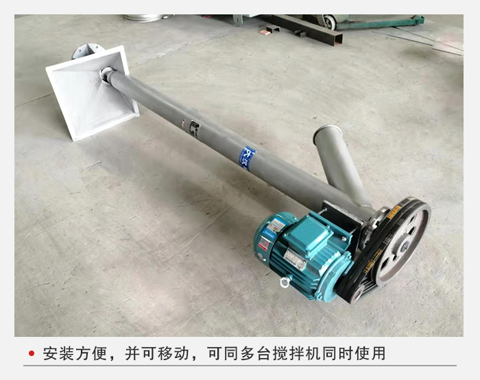 1、安裝方便,并可移動(dòng),如多臺(tái)攪拌機(jī)使用同一種料,只需一臺(tái)上料機(jī)可同時(shí)供多臺(tái)拌料機(jī)上料,免除人工加料的麻煩,使加料工作變的安全,更省時(shí)、更省力。