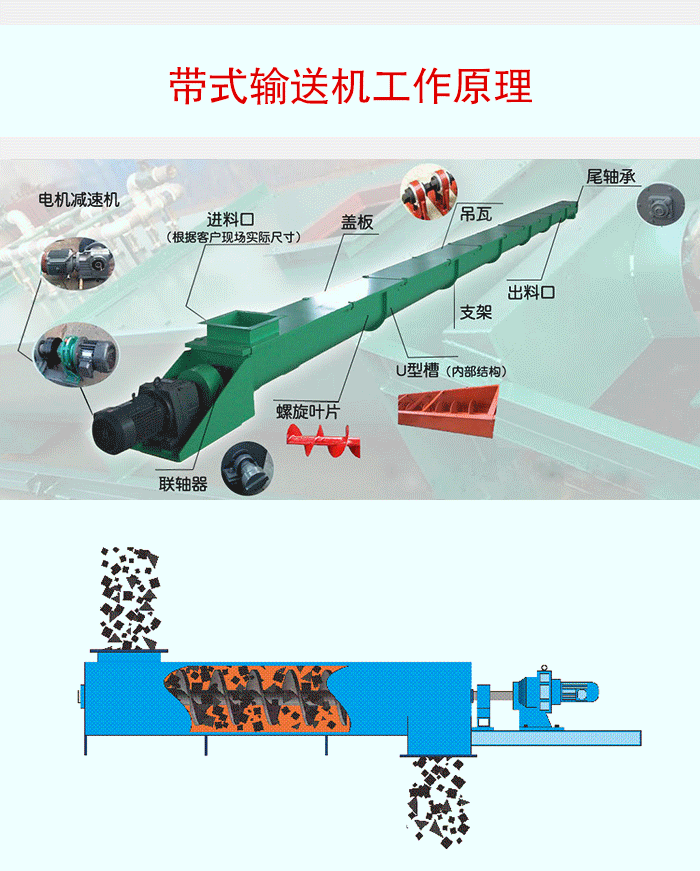 簡介:帶式螺旋輸送機也是借助螺旋軸和葉片,進行對物料進行推送的輸送設備。